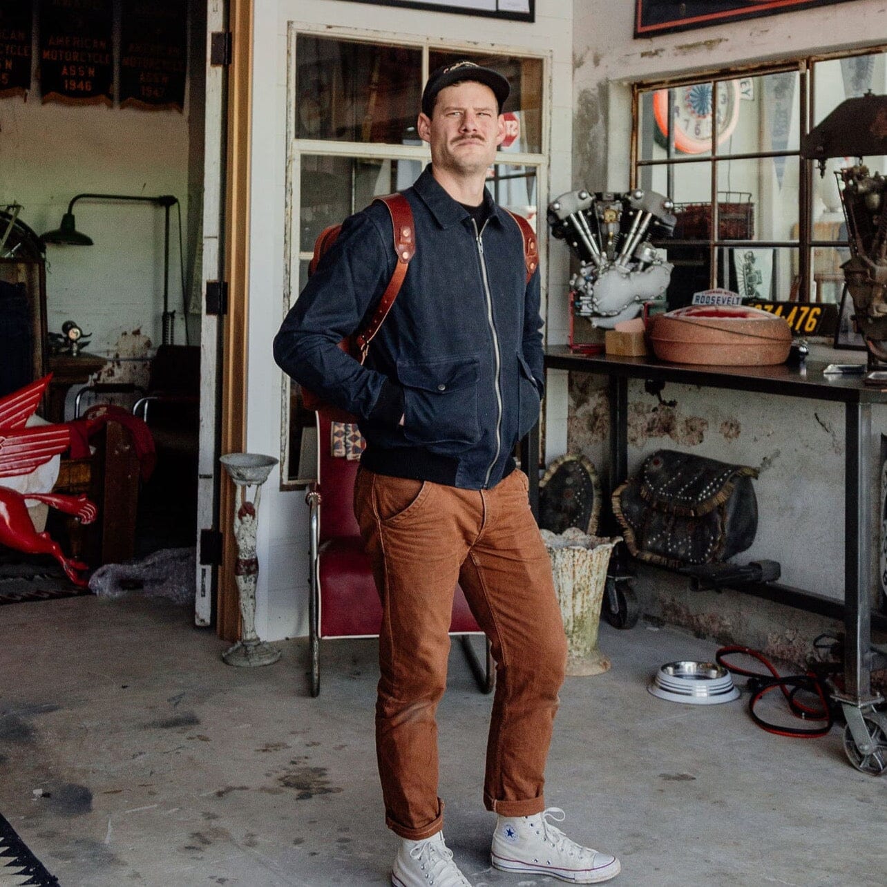 Welcome the newest addition to the Bradley Mountain Jacket line: The G-1 Bomber. Modeled after the 1947 Navy Jacket, we put our own spin on it. With waxed outer, and soft flannel lining, this jacket is an instant classic. 12 oz Waxed Canvas Outer Flannel Lined Sleeves and Pockets Antiqued Brass Button Snaps Gusseted shoulders for mobility. Double entry pockets Chunky front metal zipper Hidden inside pockets Spot Clean Only USA Made Click here for sizing chart