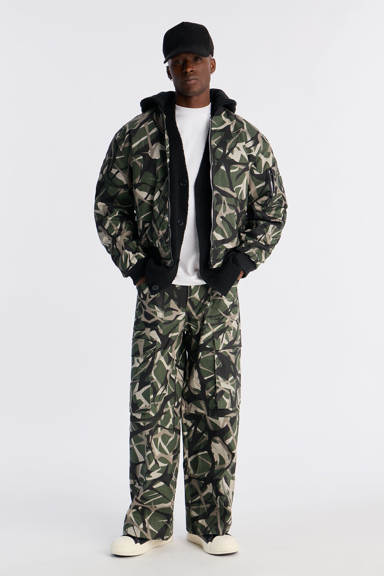 Elevate your streetwear style with the Hooded Edge Abstract Camo Bomber Jacket, featuring a bold camouflage pattern. Crafted from premium polyester with a soft fleece lining, this jacket offers exceptional comfort and warmth for everyday wear or outdoor adventures. The oversized hooded design with edge detailing adds a modern, edgy vibe, while the ribbed cuffs, hem, and collar ensure a secure fit. Zip-front closure makes it easy to layer over hoodies, tees, or thermals. Available in versatile sizes, it’s perfect for casual outings, urban exploration, or transitional weather. Machine washable for easy care. Stand out with this abstract camo bomber jacket that blends fashion and function seamlessly.