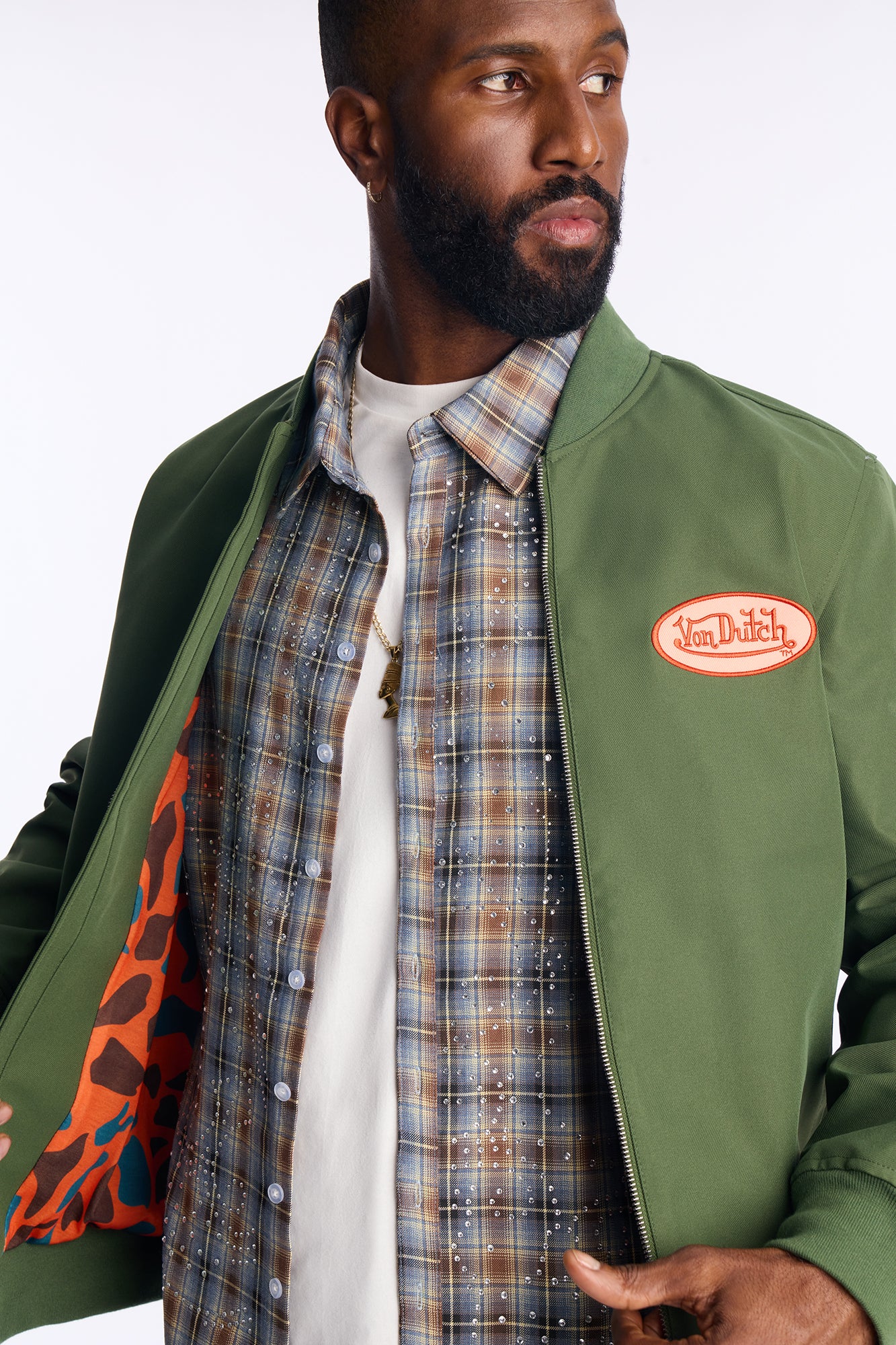 Von Dutch Iconic Patch Bomber Jacket Olive Green Mens